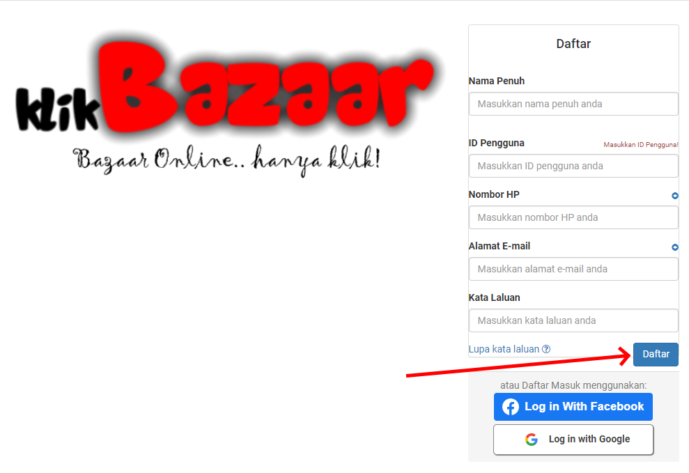 1. Daftar sebagai pengguna klikBazaar