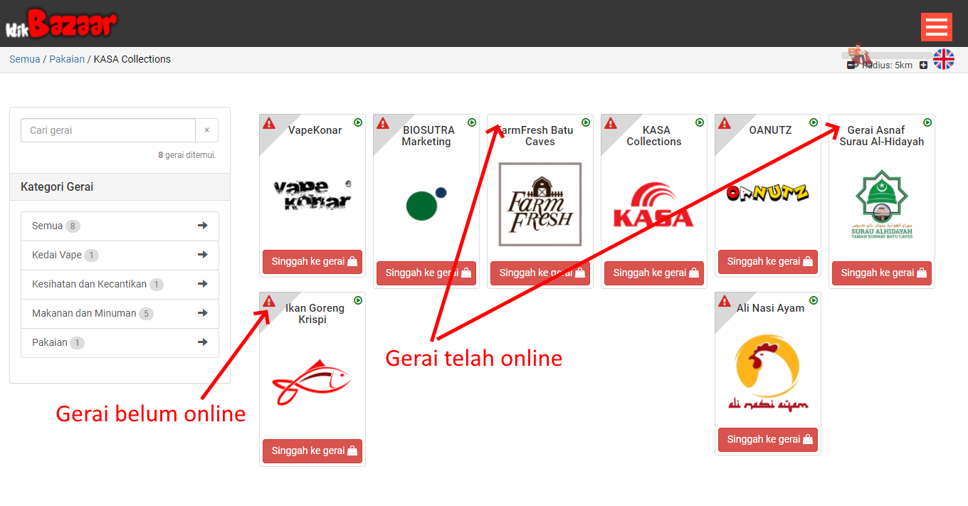8. Ke halaman gerai-gerai di klikBazaar